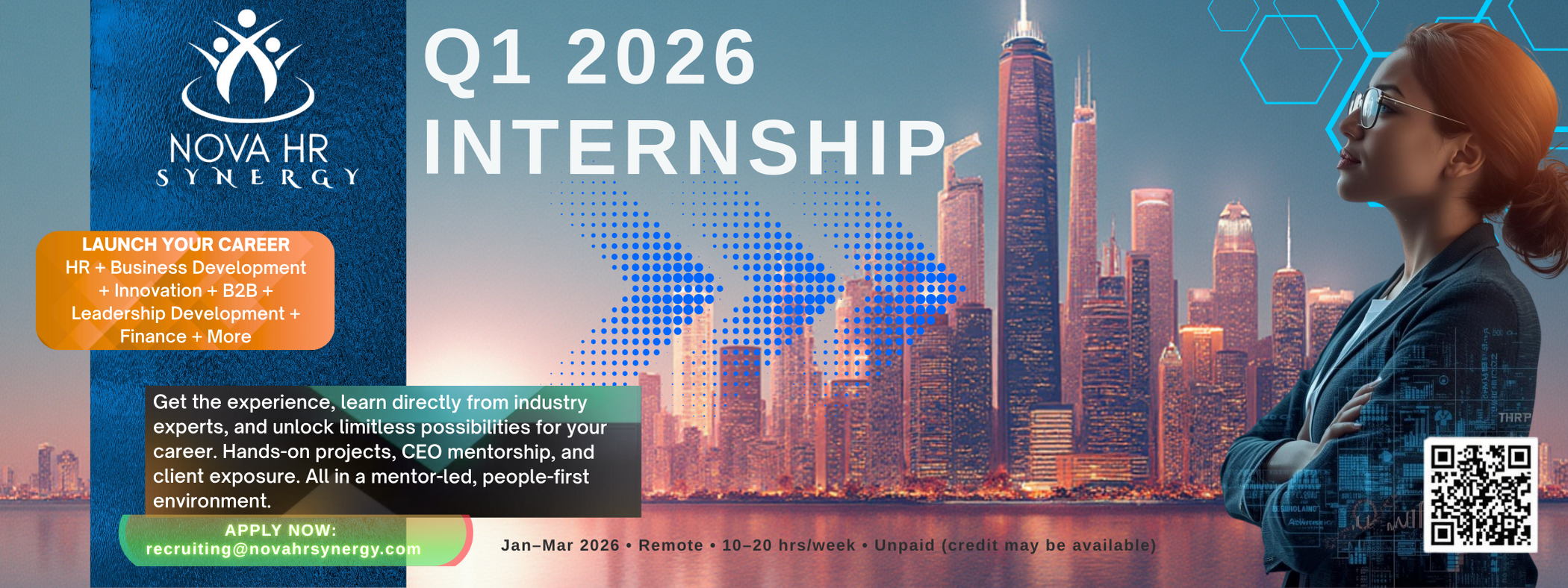 Email your resume and a short statement of interest to recruiting@novahrsynergy.com with subject “Q1 2026 Internship – [Your Name]”, or apply online:
